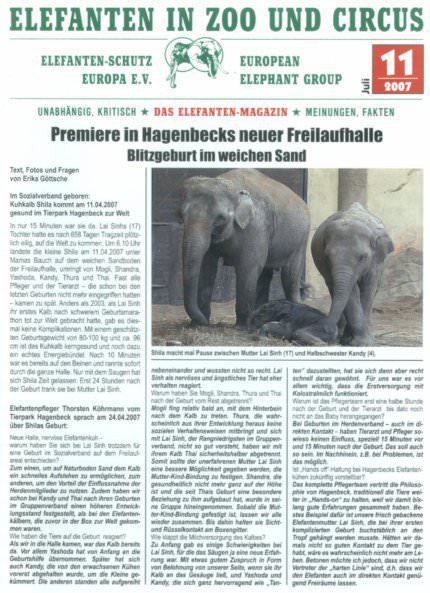 Dr. D. Sheldrick: The Show must go on? Stellungnahme zur Elefantenhaltung im Circus, Magazin 15/2009