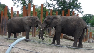 Vor genau einem Jahr am 20. Oktober 2011 verletzte die Afrikanische Elefantenkuh "Sabi" im Zoo Augsburg einen Pfleger sehr schwer. "Sabi" und die zweite Afrikanerkuh des Zoos, "Tembo", wurden daraufhin schon einen Monat später an den Zoo Rhenen/Niederlande abgegeben, wo sie seitdem im "Geschützten Kontakt" betreut werden. Mitglieder unseres Vereins haben die Beiden dort 2012 mehrfach besucht und können berichten, dass sich "Tembo" und "Sabi" dort sehr gut eingelebt haben. Die Zusammenführung mit den drei Rhenener Elefanten war völlig problemlos und "Tembo" ist momentan zur dominanten Kuh der kleinen Herde aufgestiegen. Während "Tembo" keine Probleme hatte, sich an das Targettraining im "Geschützten Kontakt" zu gewöhnen, schlug "Sabi" anfangs nach dem Target und